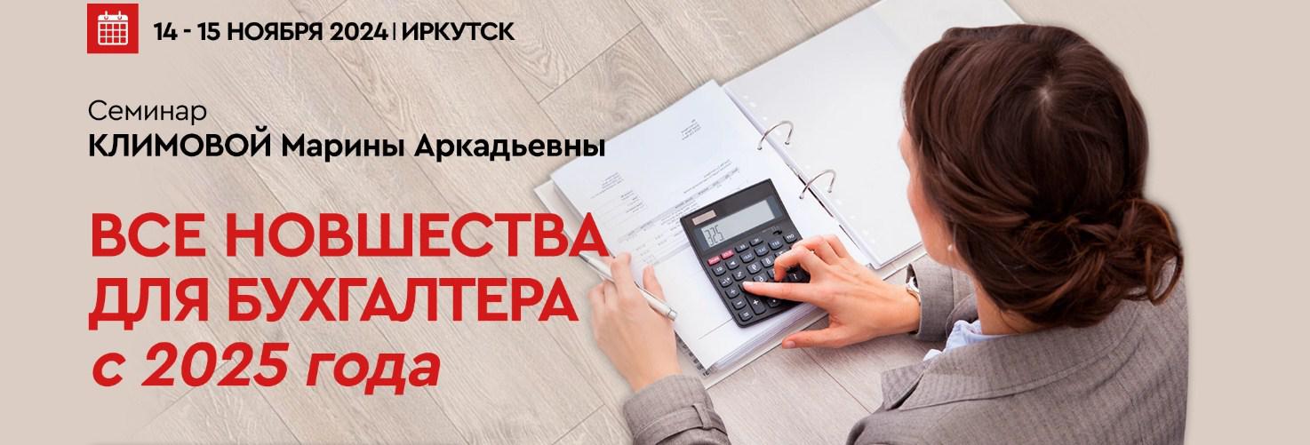 14 и 15 ноября пройдут семинары Марины Климовой "Все новшества для бухгалтера с 2025 года" для главных бухгалтеров, специалистов финансовых отделов, финансовых директоров, руководителей компаний.