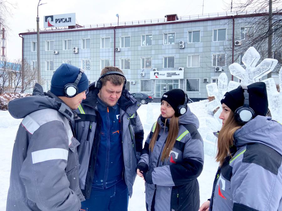 В шумоподавляющих наушниках, которые приобрели в рамках грантового конкурса, звучал голос литейщика цветных металлов ИркАЗа Вячеслава Агальцова, который погружал в историю родного города своих коллег.