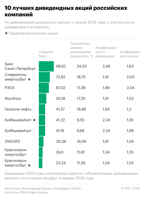Средняя доходность бумаг из списка – 15,52%. Рейтинг составило бизнес-издание РБК.
