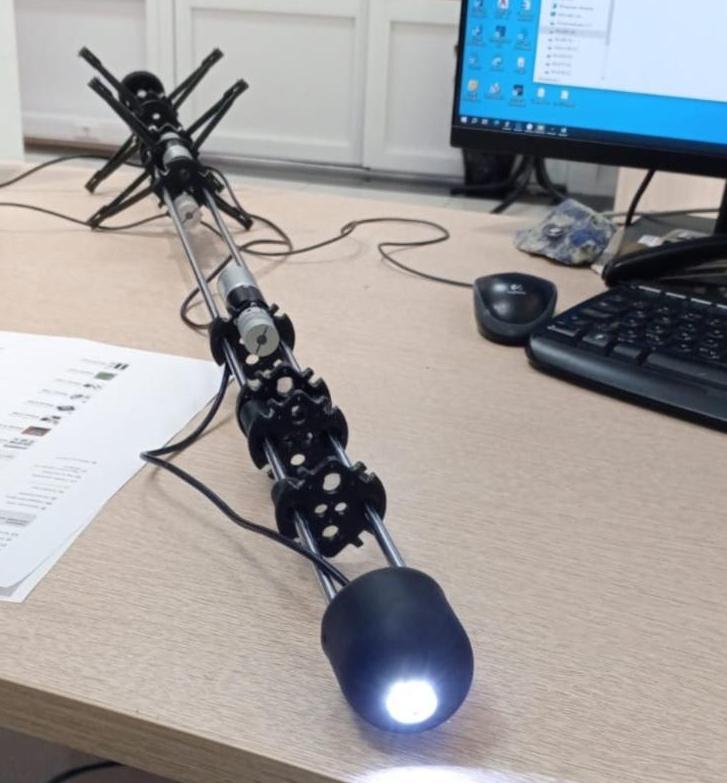 Новый прибор «ЛИС-Вергилий», которому на рынке нет аналогов, напоминает «механического червя». В основе – инновационный принцип передвижения, заключающийся в попеременном распирании заднего и переднего упоров, работающих, как автомобильный домкрат. Тело перемещается вдоль винтового стержня с помощью электромотора.