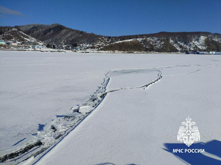Сотрудники МЧС России сообщили о многочисленных трещинах на озере Байкал. Одна из них простирается от Порта Байкал в сторону мыса Толстого, её ширина составляет 40-50 сантиметров, и она сопровождается участками открытой воды.