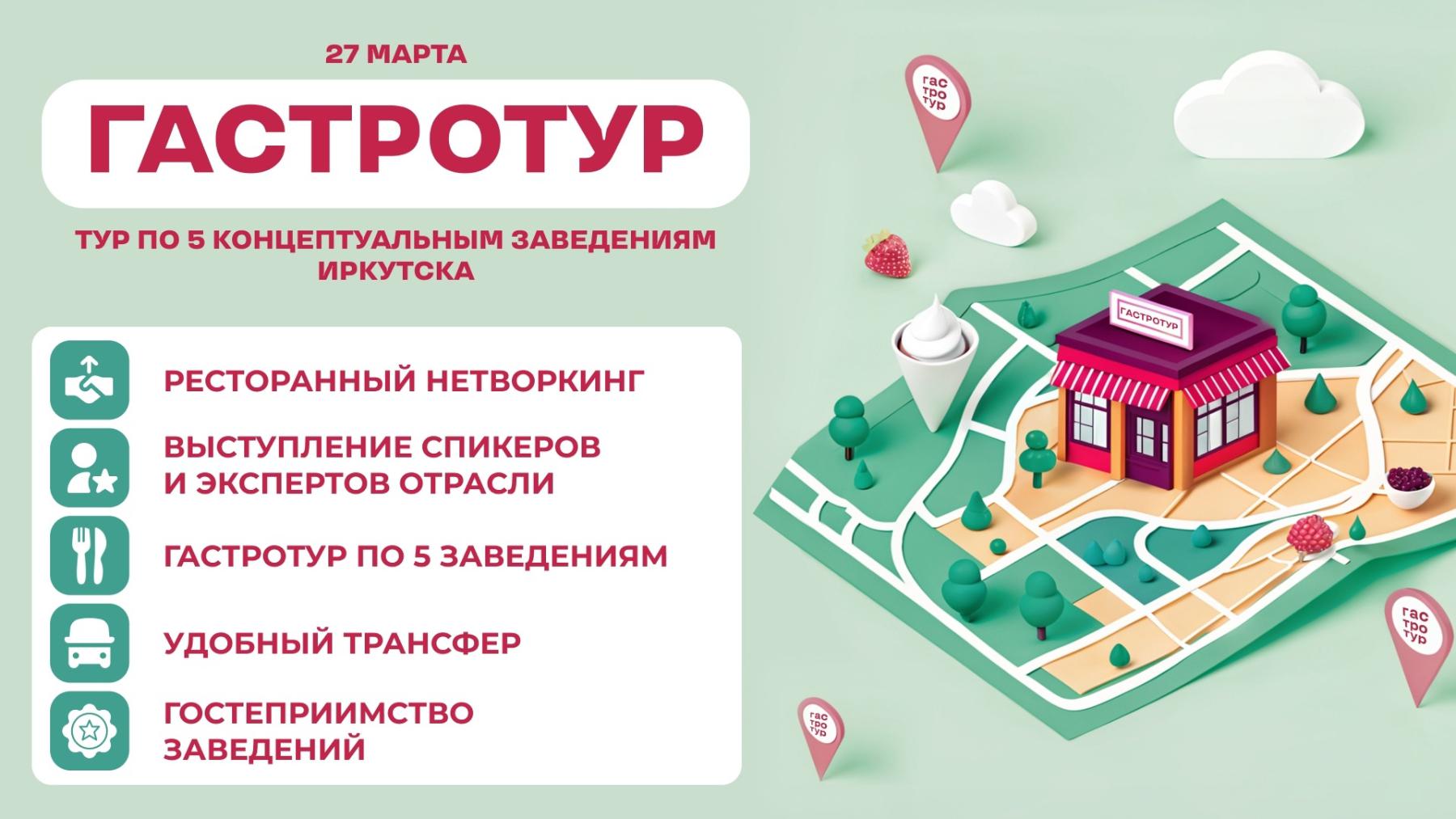 27 марта пройдет "Гастротур". Проект "Гастротур" в Иркутске - это для тех, кто стремится расширить свои горизонты и получить новый опыт в сфере ресторанного дела.