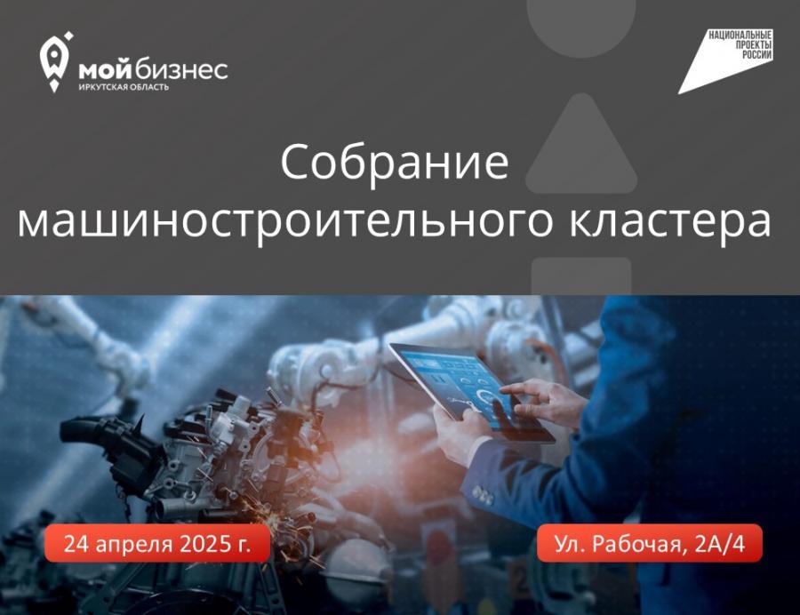24 апреля в Центре «Мой бизнес» состоится собрание территориального машиностроительного кластера Иркутской области.