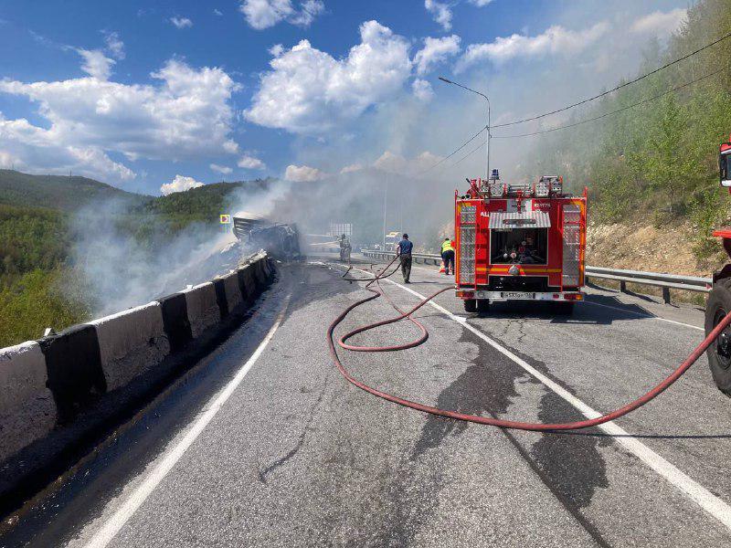 Инцидент зафиксирован в районе поселка Култук Слюдянского района. За рулем автомобиля был гражданин Китая. Предварительно установлено, что он ехал со стороны города Иркутска и опрокинулся на проезжую часть. В результате происшествия грузовик загорелся. Водителю потребовалась медицинская помощь – мужчину госпитализировали.