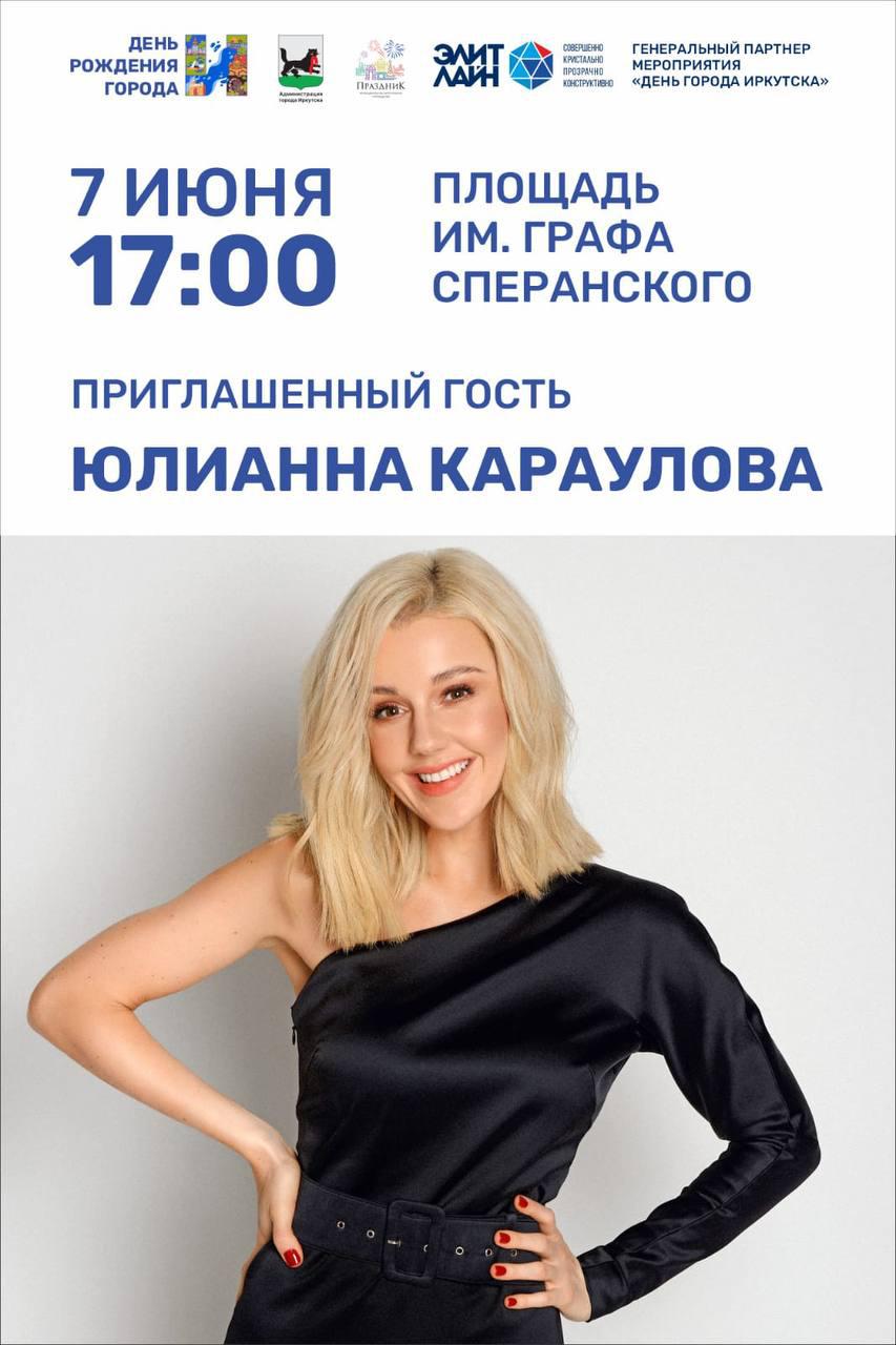 Далее пройдет гала-концерт фестиваля «Иркутск, танцующий город!», состоятся выступления иркутских шоу-дуэта «Карабас», музыкальных кавер-групп «Экстраверт» и BURRN. Завершится программа выступлением звезды – певицы Юлианны Карауловой, которое начнется в 21:00. Запуск фейерверка в этот день не запланирован