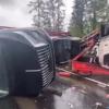 В результате ДТП водитель автомобиля FAW, следовавший в попутном направлении, тоже опрокинулся. Люди не пострадали, а все машины повредились.