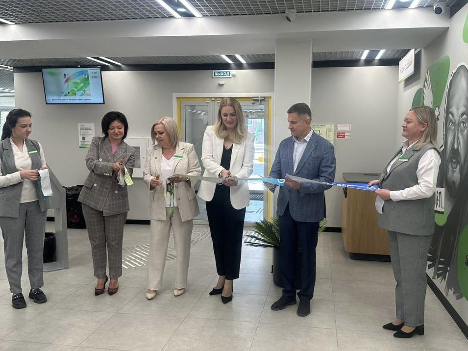 Обновленный офис Сбера – это продуманное пространство, где удобно всем. Здесь внимание уделено созданию условий для комфортного пребывания клиентов с особыми потребностями, для самых маленьких посетителей есть игровая зона, а также люди могут приходить в офис вместе с небольшими собаками.