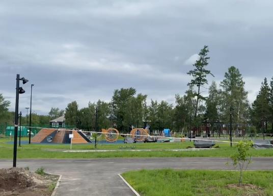 В настоящее время на пространстве подрядчик установил все лавочки, в том числе несколько по ходу движения к остановке общественного транспорта по простьбе горожан. Завершается озеленение территории, засеивают газон, высаживают деревья и кустарники. Подрядчик приступает к установке современного памп-трека.