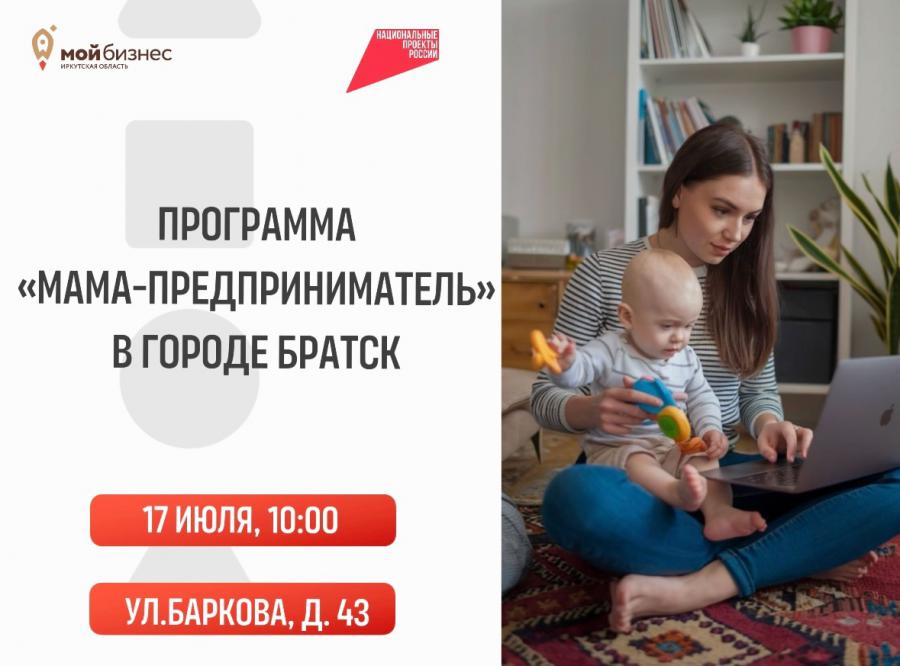 17 июля центр "Мой бизнес" приглашает на образовательную программу «Мама-Предприниматель» жителей города Братска и Братского района.