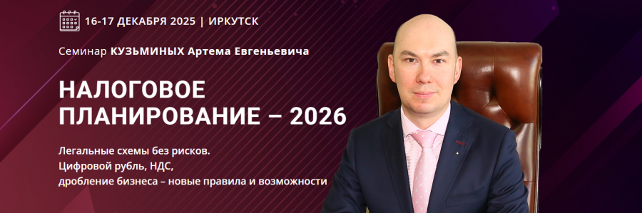 16 и 17 декабря пройдёт семинар Артёма Кузьминых "НАЛОГОВОЕ ПЛАНИРОВАНИЕ - 2026. Легальные схемы без рисков. Цифровой рубль, НДС, дробление бизнеса - новые правила и возможности".