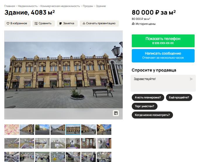 Стоимость квадратного метра оценили в 80 тысяч рублей, то есть все здание обойдется новому владельцу более чем в 320 млн рублей.