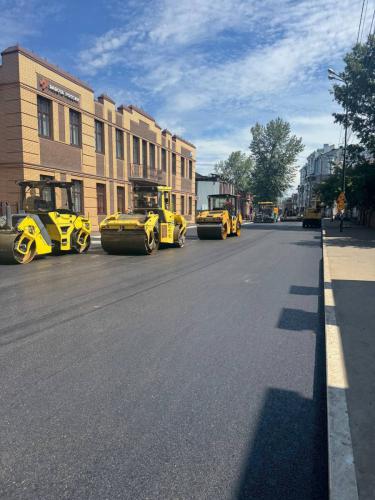 Подрядные организации провели значительный объем работ по ремонту дорог, уделив особое внимание асфальтированию. Верхний слой покрытия также уложен на улицах Крымская, Карбышева и Станция Горка. На Маяковского завершено устройство асфальта на проезжей части и установлены новые барьерные ограждения.