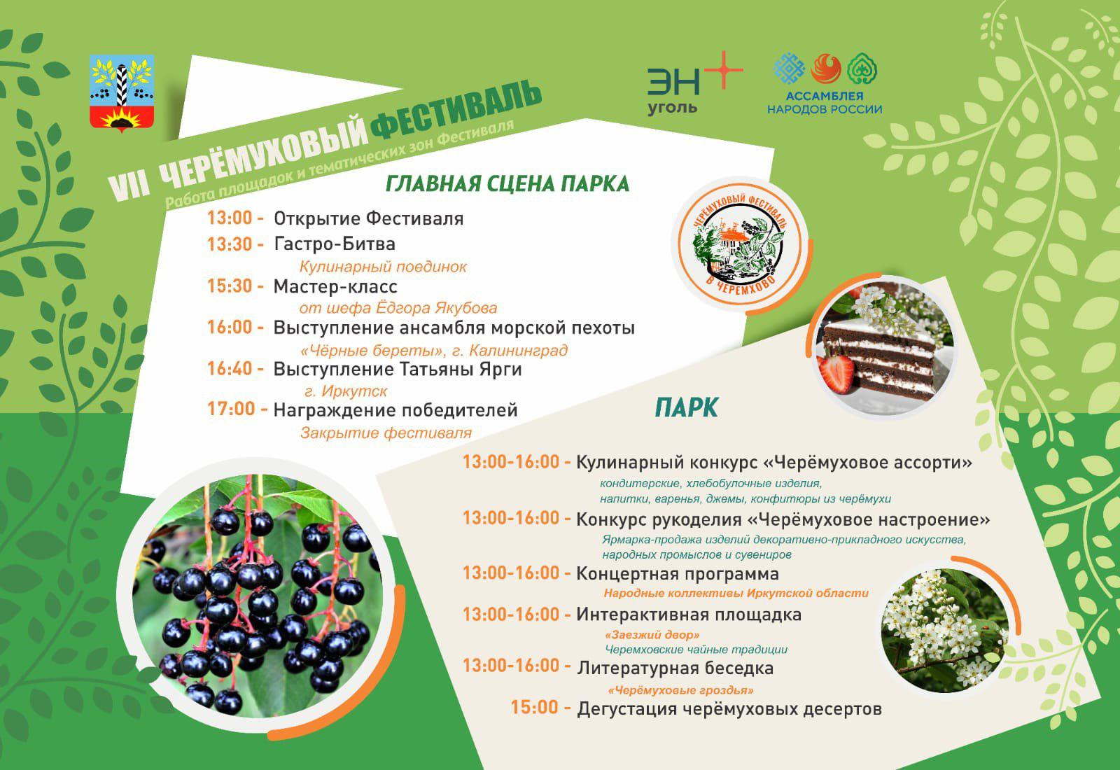 – Черёмуховый фестиваль - брендовый фестиваль города Черемхово, который ежегодно собирает тысячи гостей со всех уголков Иркутской области. В рамках фестиваля ежегодно проходят традиционные конкурсы кулинарного мастерства, декоративно-прикладного творчества и фотографии. В этом году впервые при поддержке компании Эн+ Уголь мы организуем гастро-шоу в режиме реального времени. Лучшие команды поваров области создадут блюда из необычных форм черемухи и контрастных вкусовых сочетаний, – Анастасия Мут, начальник отдела по развитию культурной сферы и библиотечного обслуживания.