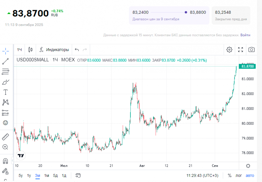 Снижение ставки ЦБ оказывает давление на национальную валюту, уменьшая спрос на импорт, а экспортеры могут сократить продажи валюты. Корпорации, ведущие внешнеэкономическую деятельность, больше не обязаны возвращать валютную выручку. На заседании ЦБ 12 сентября ожидается снижение ставки на 200 б.п., до 16%. Геополитическая неопределенность может привести к уходу трейдеров в защитные твердые валюты.