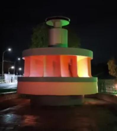Уникальный арт-объект установили в сквере у ГЭС в городе Братске Иркутской области. Он имеет форму колеса гидротурбины и светится.