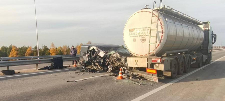 В результате ДТП водитель минивэна получил различные травмы и был госпитализирован. Известно, что водитель грузовика доставлял в цистерне из Иркутска в Томск соевое масло.