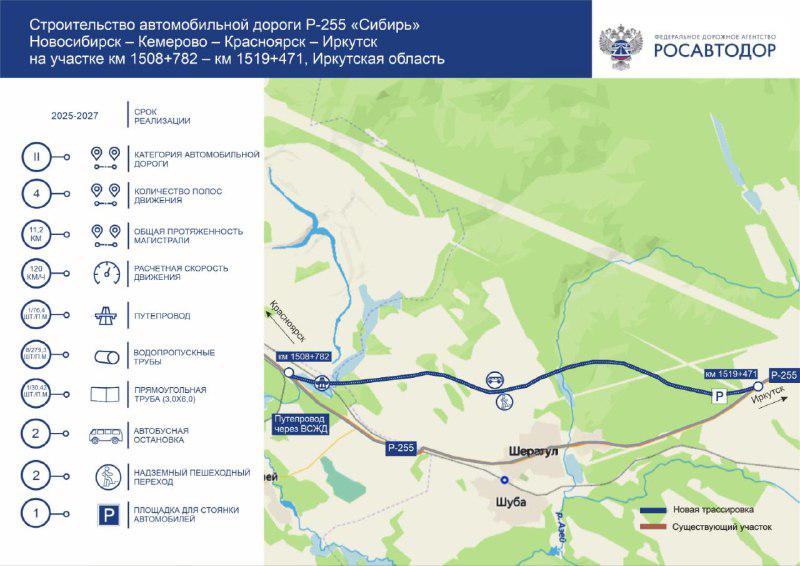 В ноябре 2025 года в Иркутской области начнется строительство объезда села Шерагул, где водители часами стоят на железнодорожном переезде в ожидании возможности его пересечь: это создает проблемы и для водителей, и для местных жителей, страдающих от транзитного транспорта. Работы проведет АО «Труд».