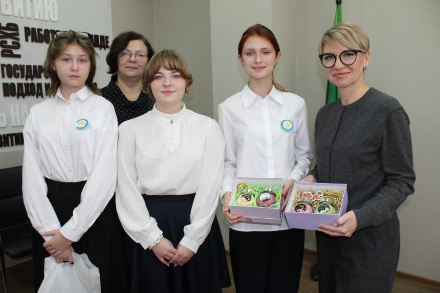 Директор Иркутского регионального филиала Россельхозбанка Наталья Баркова поздравила команду «Хозяюшки» из села Урик с победой в финале Всероссийского конкурса «Школьный Агростартап. Семиклассницы Софья Халейка, Екатерина Бойко и Диана Данилова посетили офис Россельхозбанка в Иркутске, где поделились впечатлениями об участии в конкурсе и рассказали о планах на будущее. Недавно команда вернулась из Москвы, где представила проект «Пряные соли Урика», направленный на выращивание зелени и её переработку в ароматизированные соли.