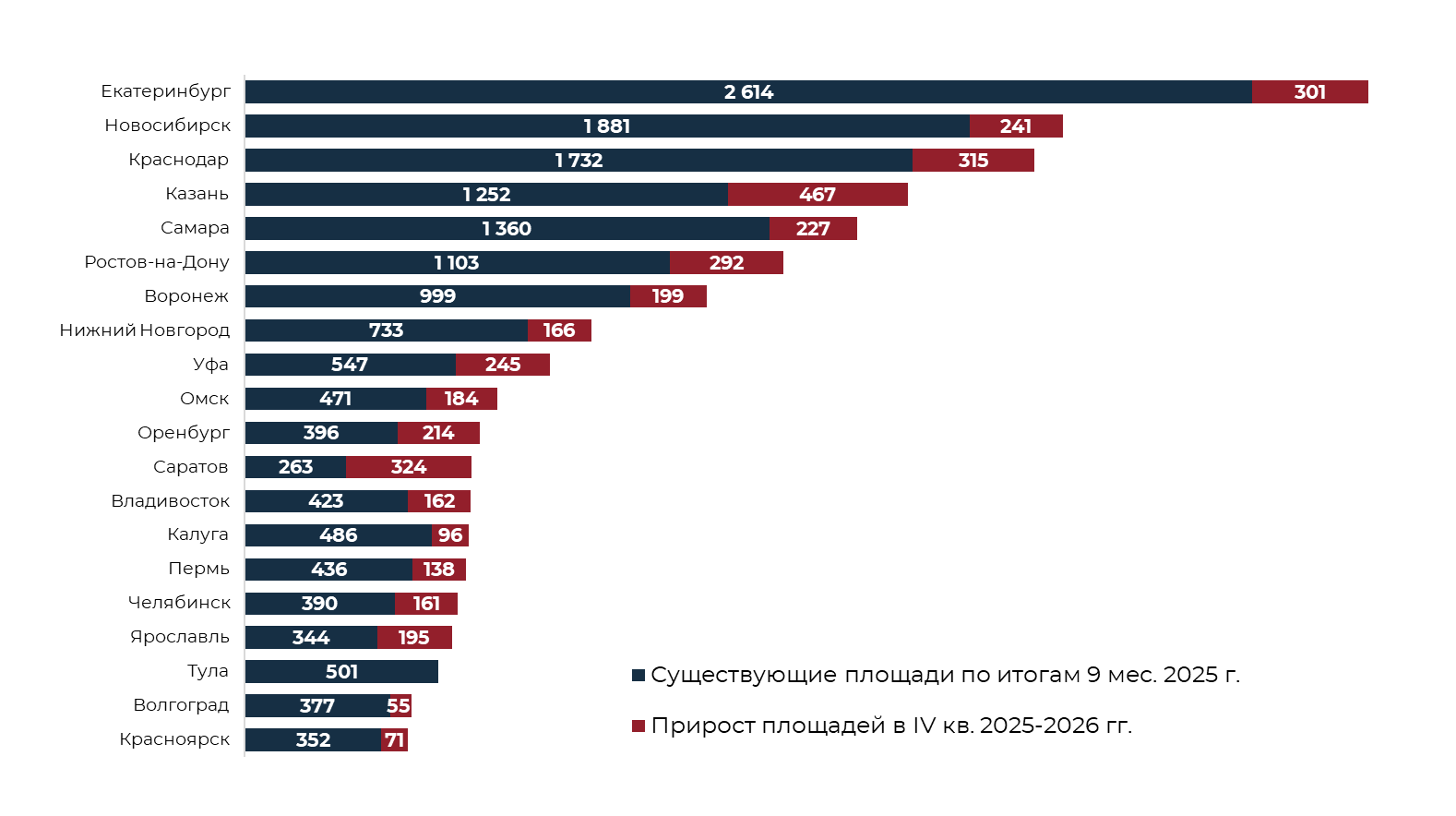 По итогам девяти месяцев 2025 года крупнейшими региональными рынками качественной складской недвижимости в России являются Екатеринбург, Новосибирск и Самара. В четвертом квартале 2025 года и в 2026 году в этих регионах планируется дальнейший прирост складских площадей, сообщают аналитики NF GROUP.