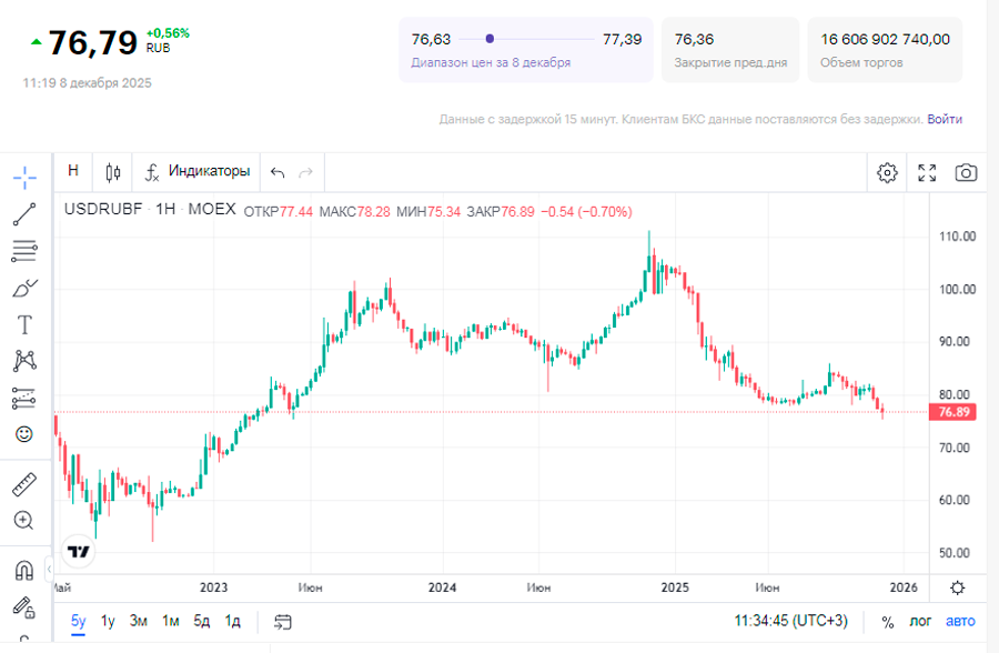 «Несмотря на текущий рост рубля, рынок ожидает его ослабления к декабрю 2026 года примерно на 13%, до уровня около 86 рублей за доллар», — добавил Максим Шеин.