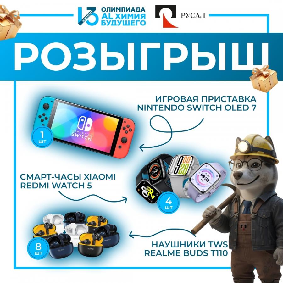 Школьники 8–11 классов со всей России получили не только шанс проявить себя в инженерном мышлении, но и автоматически участвуют в розыгрыше 13 ценных призов, включая игровую приставку Nintendo Switch OLED 7, смарт-часы Xiaomi Redmi Watch 5 и беспроводные наушники Realme Buds T110.