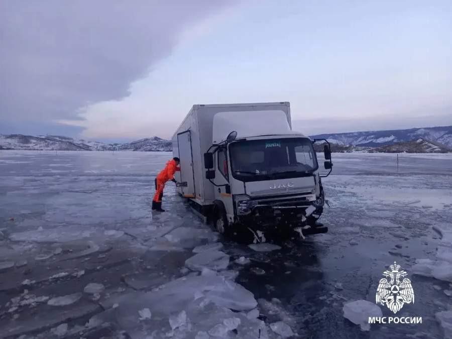 Сегодня утром частично под лед Байкала провалился автомобиль JAC с четырьмя отдыхающими: самостоятельно выбраться из машины они также не смогли, их спасли и доставили на хивусе на берег.