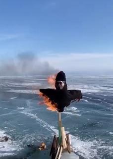 В Иркутской области местные жители провели необычный ритуал – на льду Байкала, который недавно с неоднозначным смыслом полизал российский певец Shaman, сожгли чучело с лицом артиста, чтобы очистить озеро от скверны. Соответствующие кадры появились в соцсетях.
