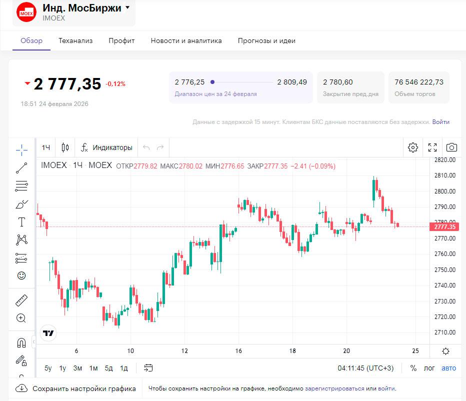 Во вторник, 24 февраля, российский рынок акций проявлял нестабильность. Начав день с подъема, сессия вскоре обернулась спадом. Начало торговой сессии ознаменовалось достижением индекса МосБиржи уровня выше 2800 пунктов, впервые с конца января. Но после быстрого скачка последовала коррекция вниз.
