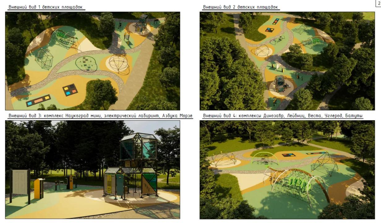 Также на территории появятся новые батутные и спортивные комплексы, научная детская площадка. Планируется высадка саженцев сосны, пихты, рябины, ивы и сирени для дальнейшего озеленения общественного пространства.