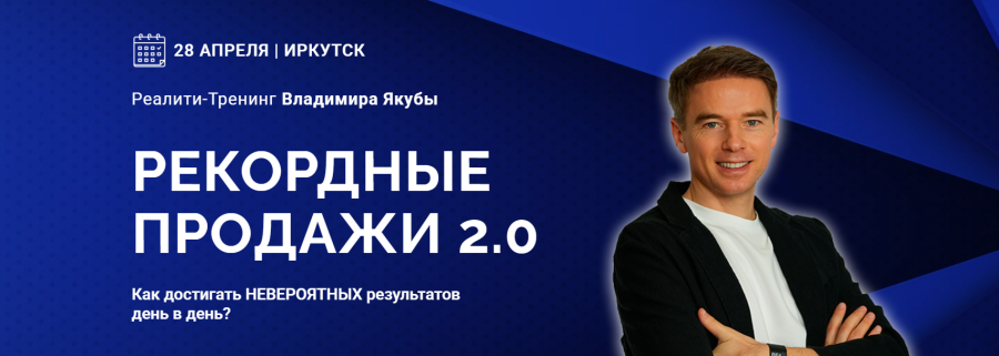 28 апреля пройдёт реалити-тренинг Владимира Якубы "Рекордные продажи 2.0. Как достичь невероятных результатов день в день?".