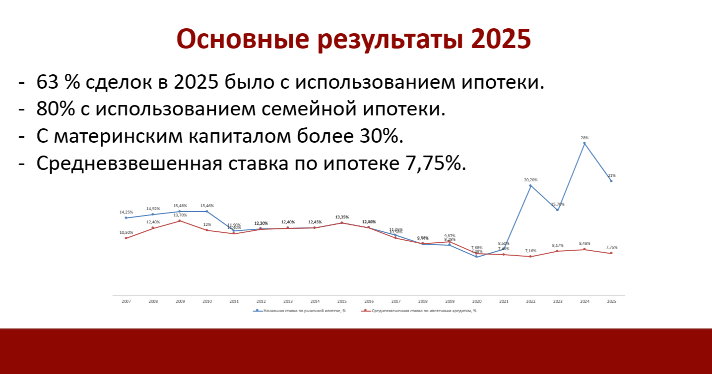 «Сегодня мы – отрасль, полностью зависящая от ипотечных и льготных механизмов. Без ипотеки рынок новостроек просто встанет. Кстати, 80% всех кредитов в 2025 году выдано в рамках семейной программы», – подчеркивает Татьяна Красноштанова.