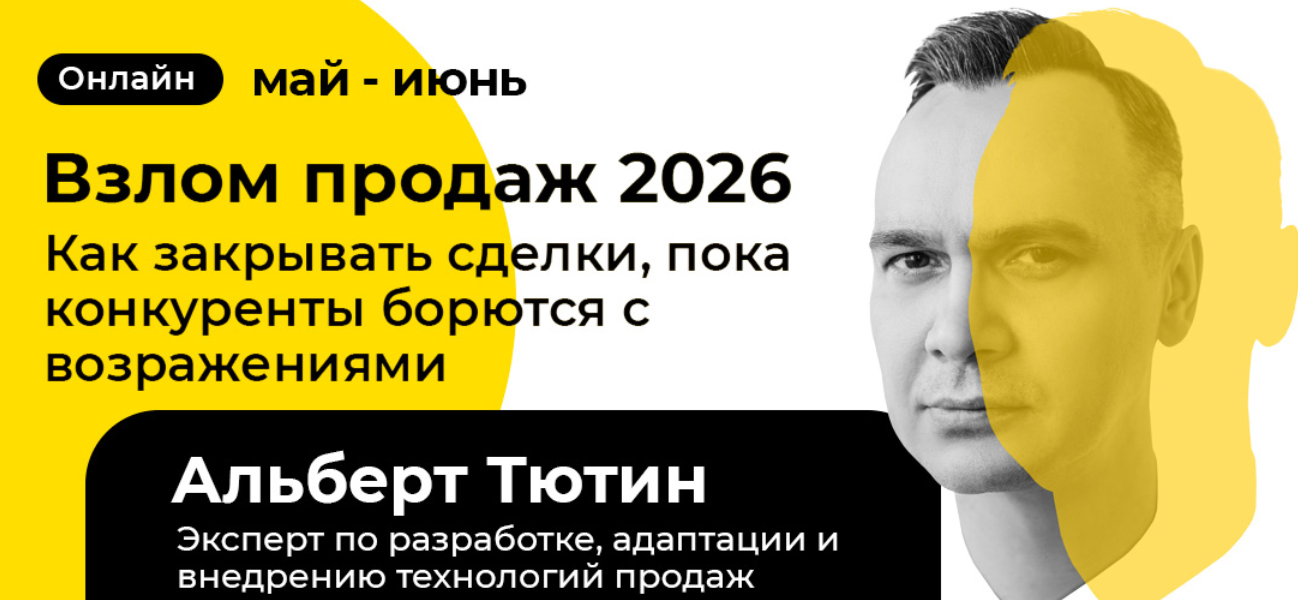 В мае и июне пройдёт онлайн-программа Альберта Тютина "Взлом продаж 2026: как закрывать сделки, пока конкуренты борются с возражениями".