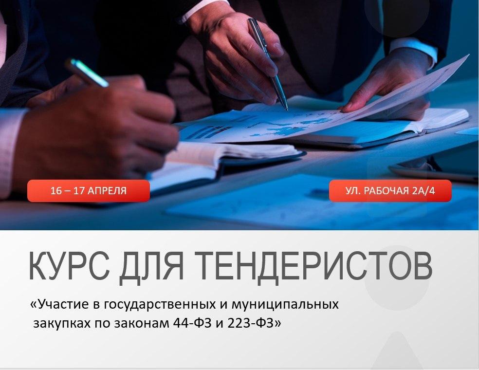 16 и 17 апреля центр "Мой бизнес" приглашает на курс для тендеристов "Участие в государственных и муниципальных закупках по законам 44-ФЗ 223-ФЗ".