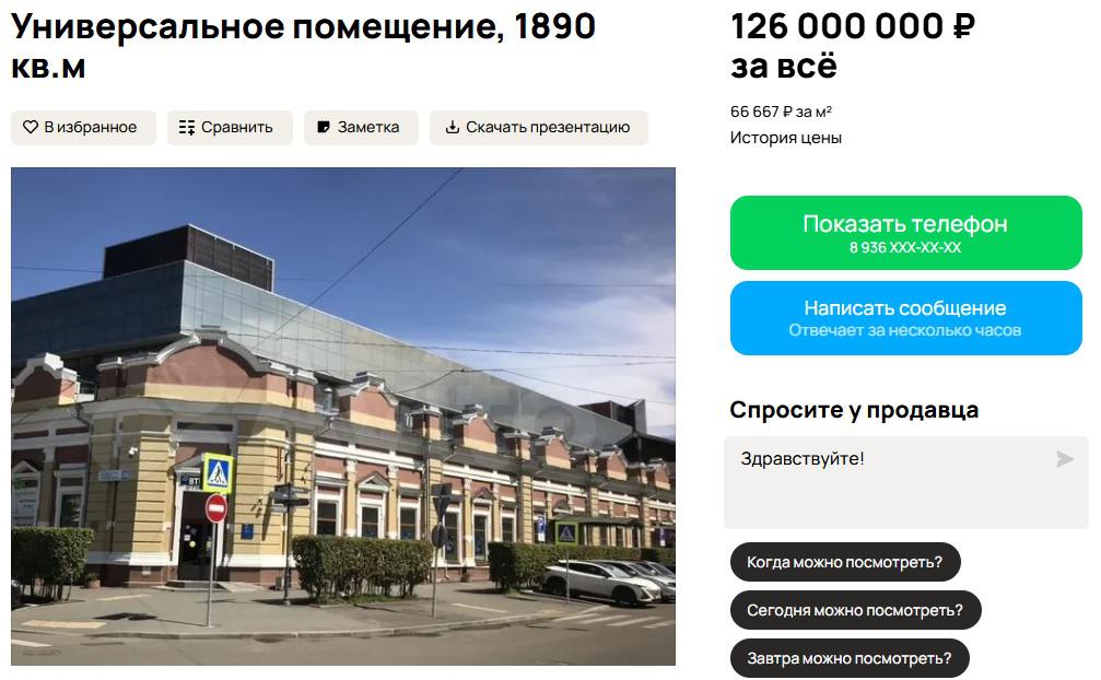 В Иркутске ищут нового собственника для части торгово-офисного центра «Сезон». На продажу выставили целиком четвертый этаж здания, стоимость которого оценили почти в 130 млн рублей, следует из данных на популярном сервисе объявлений.