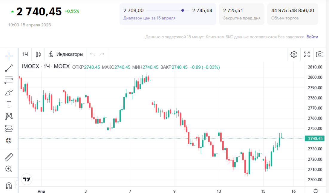 Российский рынок акций в среду, 15 апреля, продемонстрировал уверенный рост, отыграв просадку начала недели. Индекс МосБиржи устремился вверх на фоне улучшения сразу нескольких ключевых факторов.