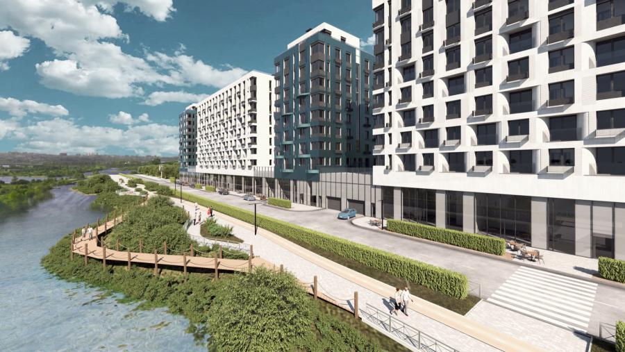 «Риверанг» становится частью пейзажа. Работы по монтажу фасадов клубного дома идут полным ходом