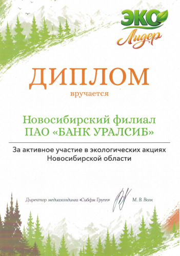 «Сотрудники Уралсиба принимают участие в акциях по очистке берегов от мусора, сажают деревья, помогают приютам. Банк также поддерживает образовательные и просветительские проекты экологической направленности, выступает партнером слетов и фестивалей юных экологов. Мы и в дальнейшем будем поддерживать такие инициативы», – отметила Исполнительный директор, Управляющий филиалом ПАО «БАНК УРАЛСИБ» в Новосибирске Наталья Голубева.