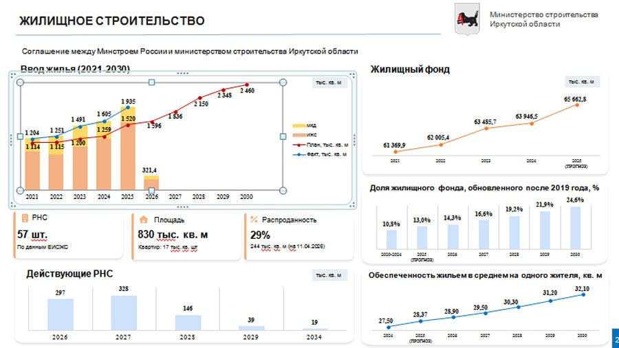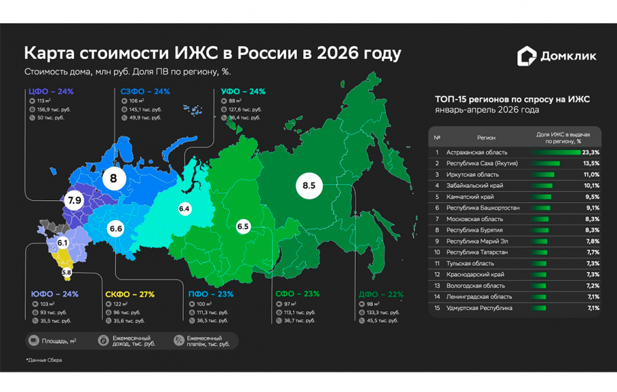 Несмотря на указанные явления, интерес к индивидуальному жилищному строительству в Иркутской области сохраняется, о чем свидетельствуют данные аналитиков Домклик: Приангарье по итогам первого квартала 2026 года является третьим среди регионов РФ по спросу на кредиты для возведения такого жилья – доля в выдачах равна 11%, больше только в Якутии и Астраханской области – 13,5% и 23,3% соответственно.