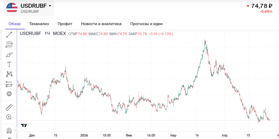 В апреле 2026 года доллар США подешевел до 74,6 рублей — минимума за три года. Однако в мае эксперты прогнозируют остановку этого укрепления. Главная причина — возвращение Минфина на валютный рынок, сообщает РБК.