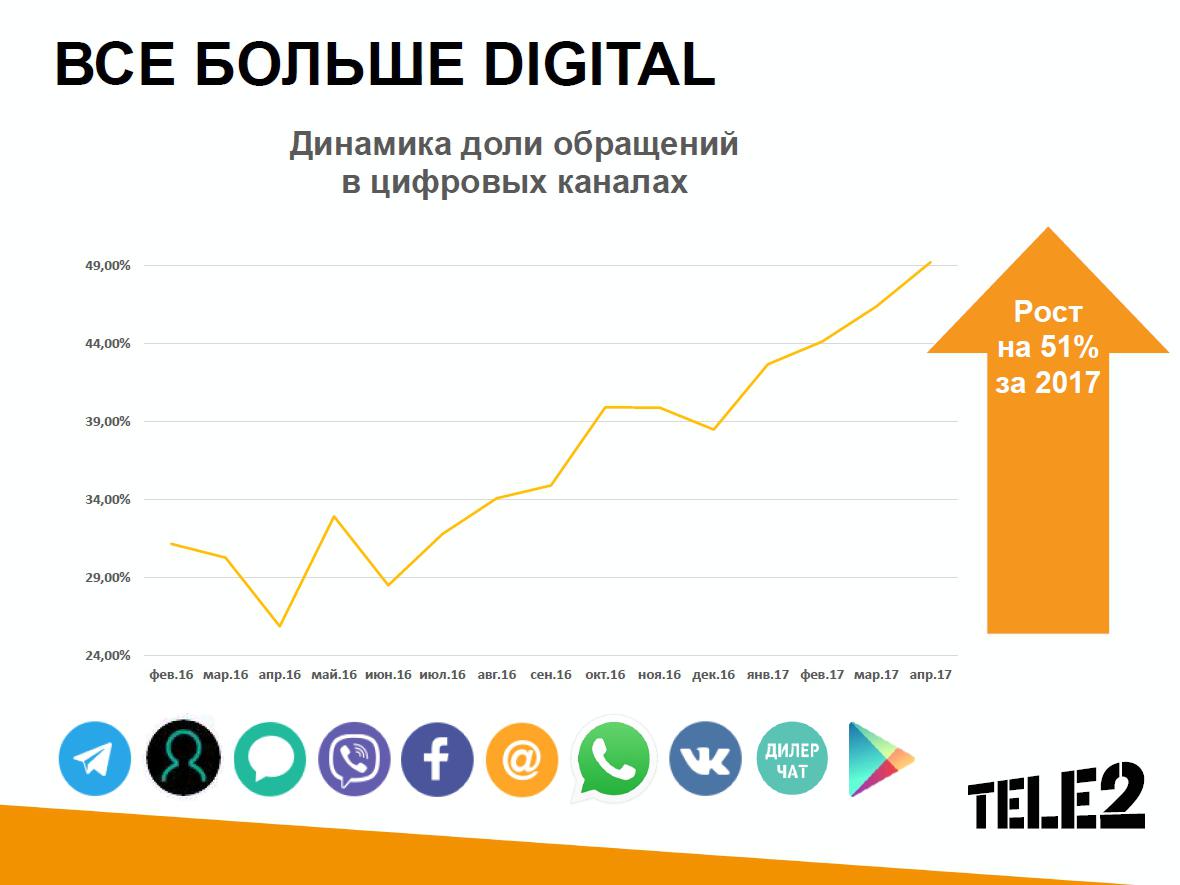 Наталья Лошкарева рассказала, что Tele2 изучает и улучшает все пути, которыми клиенты выходят на связь с компанией.