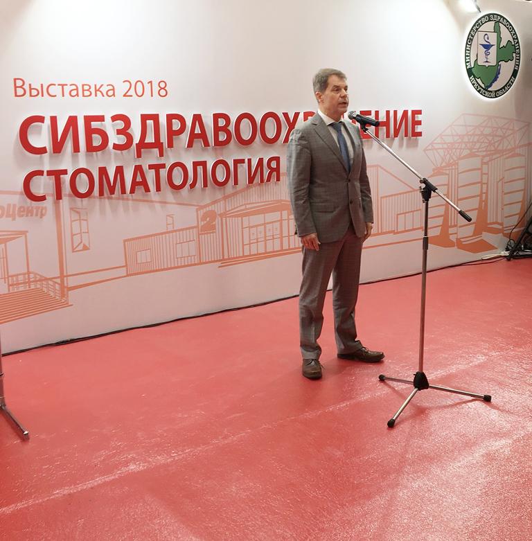 Далее с торжественной речью выступил министр здравоохранения Иркутской области Ярошенко Олег Николаевич: «Сегодня выставка юбилейная, в этом году ей двадцать пять лет. И все эти годы наши уважаемые организаторы дают возможность медорганизациям, Министерству здравоохранения Иркутской области, производителям, поставщикам современного медицинского оборудования и лекарственных препаратов встречаться здесь на павильонных стендах. Специалисты смогут обменяться мнениями, передадут новые технологии, а самое главное выставка широко откроет двери для населения Иркутской области».