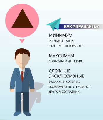 «Треугольников» руководители часто недолюбливают за «звездность», а еще боятся, потому что те слишком амбициозны: они как правило одной ногой в управлении или в предпринимательстве. Однако «треугольники» – одни из самых ценных сотрудников, от них зависит движение. Когда они работают в компании, это всегда рост продаж и завершение начатого, потому что «треугольники» – люди результата.