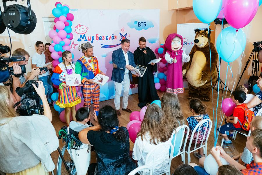 За первую половину 2019 года в рамках благотворительной программы «Мир без слёз» банк ВТБ помог в приобретении медицинского оборудования 13 детским медицинским учреждениям в разных регионах России. Больницам вручили денежные сертификаты на общую сумму 40 млн рублей, а маленькие пациенты увидели интерактивные спектакли и получили памятные подарки.