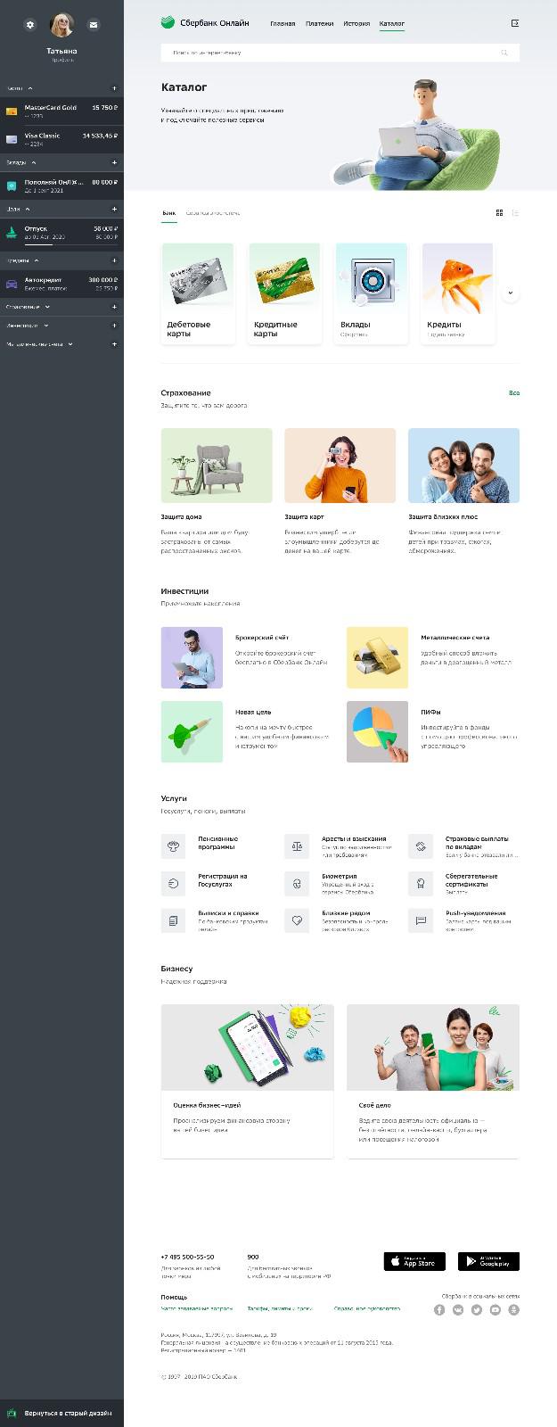 - Каталог. Здесь собраны все продукты банка и партнеров, а также выгодные персонализированные предложения — уникальные для каждого клиента.