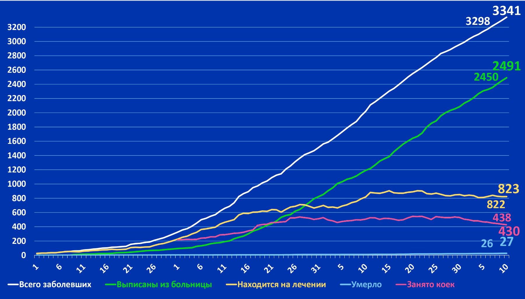 Успешно завершил лечение и выписался из больниц 2491 человек, умерло 27 человек. Проходят лечение в стационарах республики 420 больных. На амбулаторном лечении находятся 403 пациента.