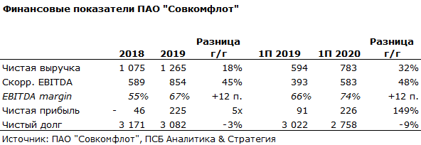 По итогам 1 полугодия компания показала сильные финансовые результаты. Этому способствовал рост ставок на фрахт танкеров в условиях низких цен на нефть, а также снижение курса рубля. Дополнительным фактором стало незначительное снижение объема морских перевозок в условиях пандемии, а также наличие долгосрочных договоров на фрахт.
