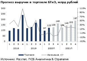 Мы считаем, что в 2020 – 2021 гг. продажа смартфонов останется основным драйвером роста рынка БТиЭ, а весь рынок будет постепенно восстанавливаться до уровней 2019 г. Также ожидаем, что тенденция постепенного перехода в онлайн-торговлю продолжится из-за укореняющегося изменения потребительского поведения по причине пандемии и призыва к самоизоляции.