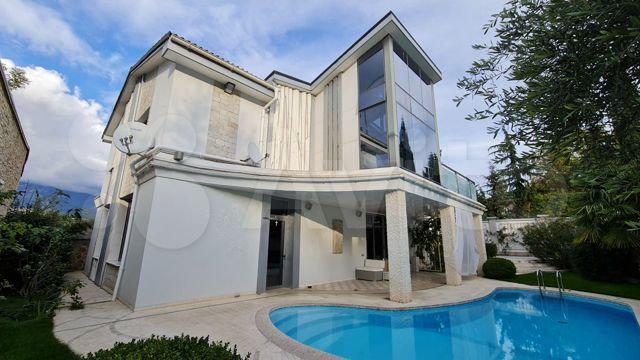 Предпоследний вариант — это дом в современном стиле, расположенный в центре Ялты. Он оснащен системой “умный дом”, поэтому управлять освещением и электроприборами можно будет с пульта, находясь в любой точке дома. Коттедж состоит из двух жилых этажей. В гостиной на первом этаже установлен большой плазменный телевизор и проектор, вокруг которых можно будет уютно устроиться 1 января и смотреть любимые новогодние фильмы. Праздничный ужин при желании можно будет приготовить дома — вся необходимая техника для этого здесь есть. Дом рассчитан на 6 человек, которые смогут расположиться в трех спальнях на первом и втором этажах. Чтобы отдых оказался незабываемым, здесь предусмотрены джакузи, бассейн во дворе, терраса с плетеной мебелью, качели и место для барбекю. Во дворе коттеджа растет множество деревьев и цветов. Рядом с домом организованы парковочные места для нескольких машин.