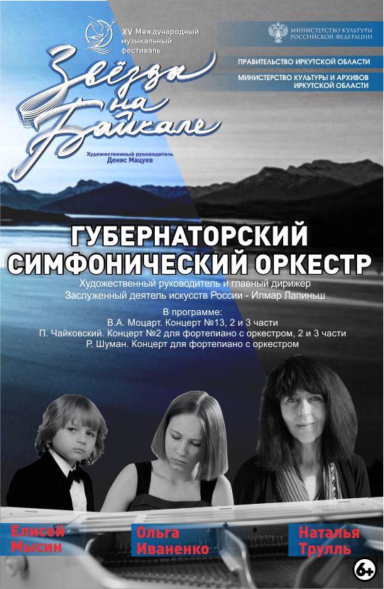 «Юные музыканты Елисей Мысин, Ольга Иваненко и их педагог, профессор Наталия Трулль выступят на сцене Иркутской областной филармонии совместно с Губернаторским симфоническим оркестром под управлением художественного руководителя и главного дирижёра Илмара Лапиньша», – говорится в сообщении.