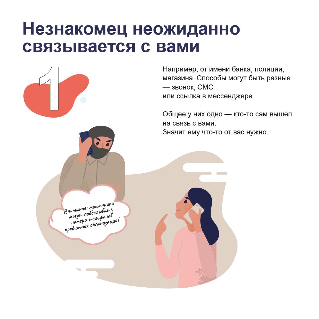 Кто-то сам вам звонит (пишет письмо, присылает ссылку и так далее). Вне зависимости от того, кем он представляется, — сотрудником банка, полиции, магазина, братом миллионера из Нигерии — и чего он хочет, надо быть осторожным. Помните: если кто-то незнакомый звонит вам, значит ему что-то нужно.